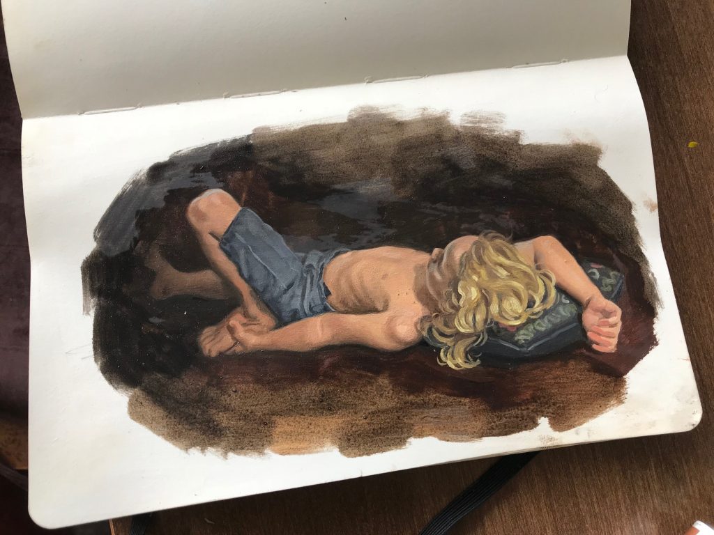 Leif in vegetative tv repose May 15, 2018 by deathlylost Putting on an episode of Psych is like catch-and-release for figure models. Oil on paper, 6×8 Previous articleChickensNext article self portrait